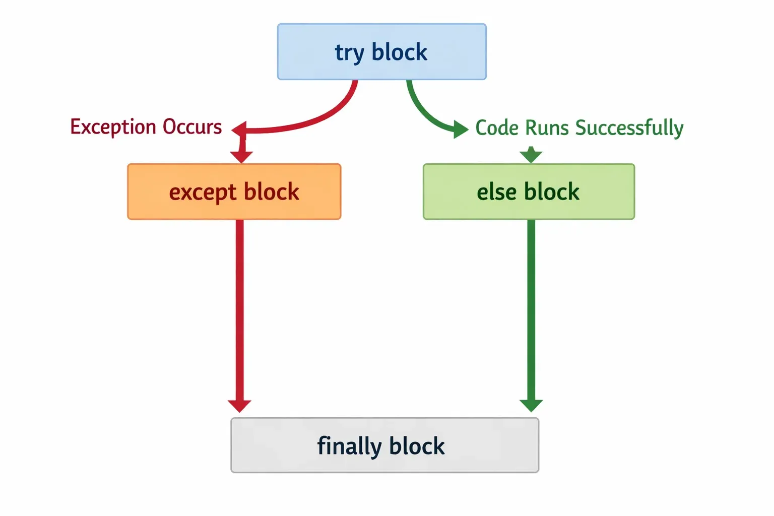 The try-except structure can be extended with two optional clauses: else and finally. Together they give you precise control over what happens in every scenario.