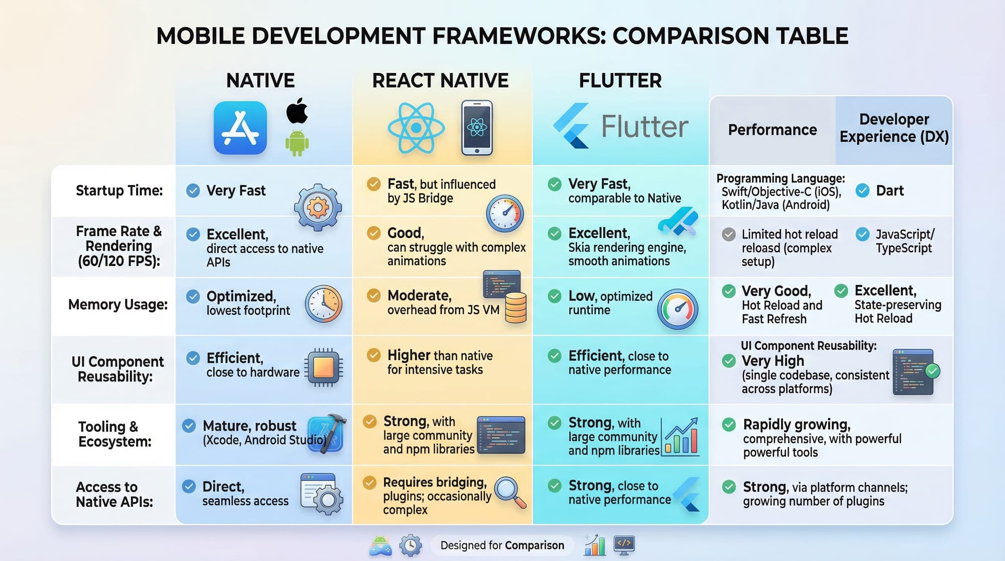 Both are good for cross-platform apps. React Native uses JavaScript (more popular), while Flutter uses Dart. The choice depends on your preference and job market demand.