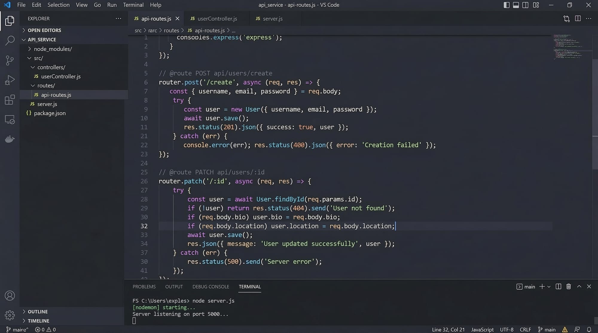 app.patch('/students/:id/courses', ...)— Updates a student's courses.req.params.id— Captures ID from URL path.student.courses.push(course);— Adds a new course to student's list.- Returns