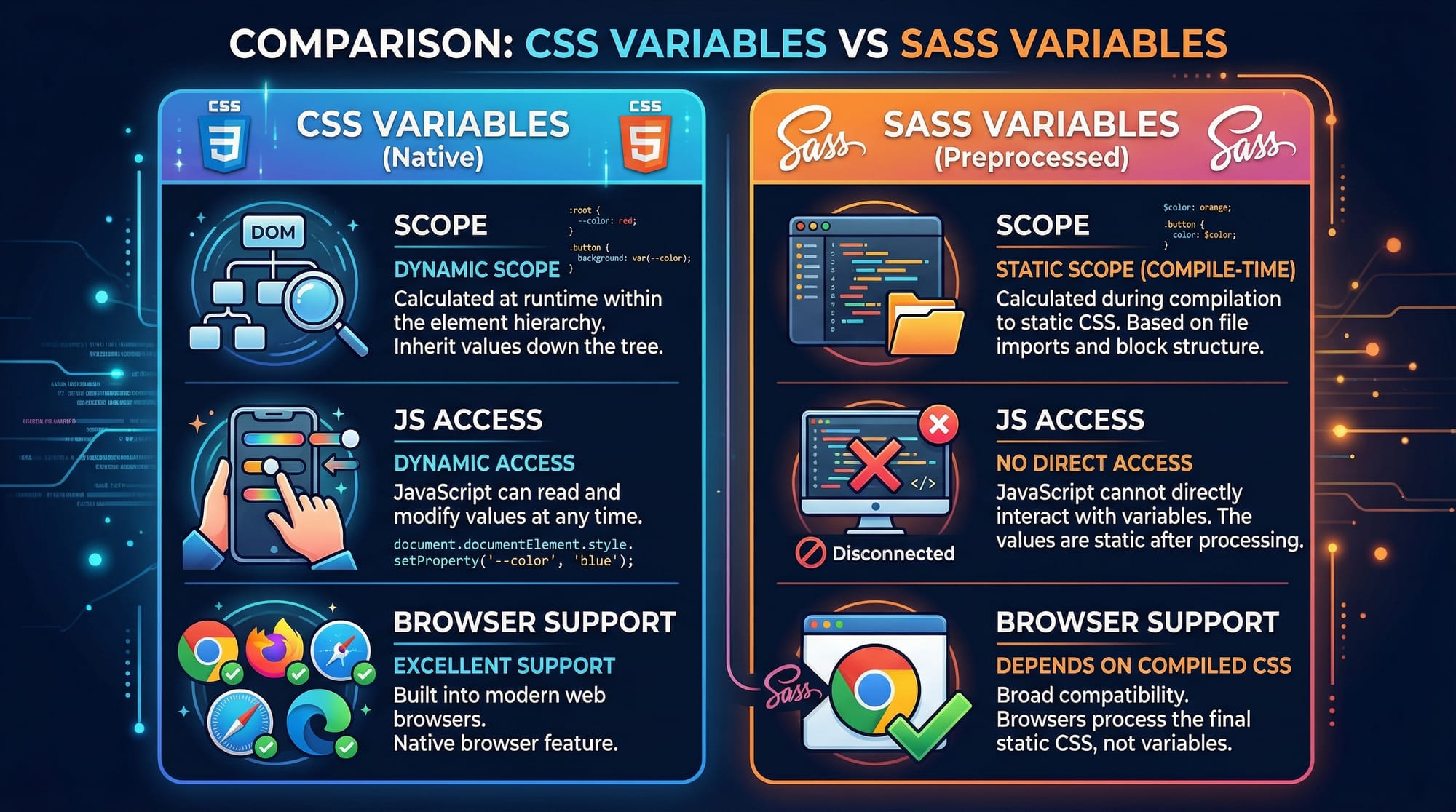 What is the difference between CSS variables and Sass variables?