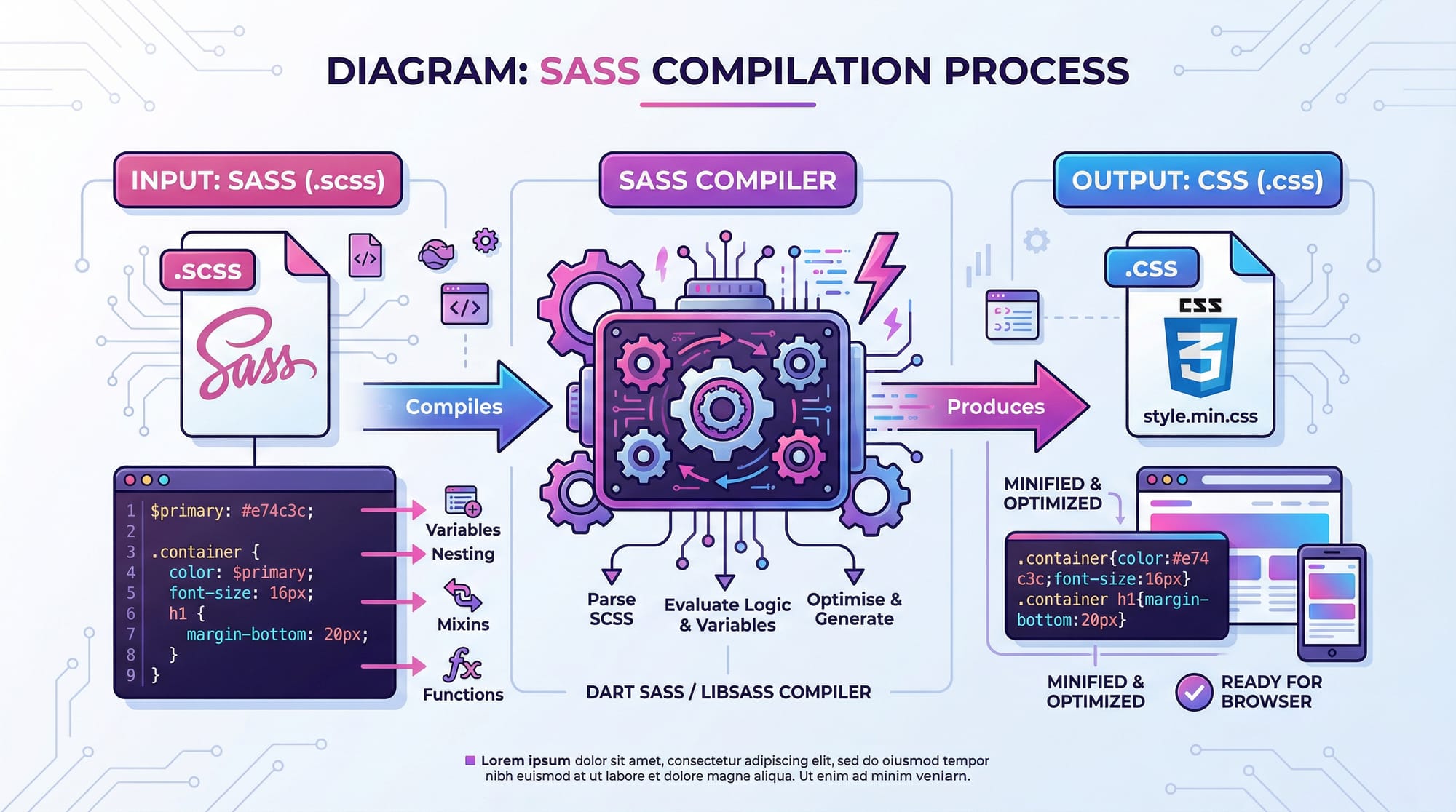 Sass (Syntactically Awesome Style Sheets) and SCSS (Sassy CSS) are powerful CSS preprocessors that help web developers write cleaner, more organized, and reusable styles. In this Sass/SCSS tutorial, you will learn how CSS preprocessing works and why it’s essential for modern web development.