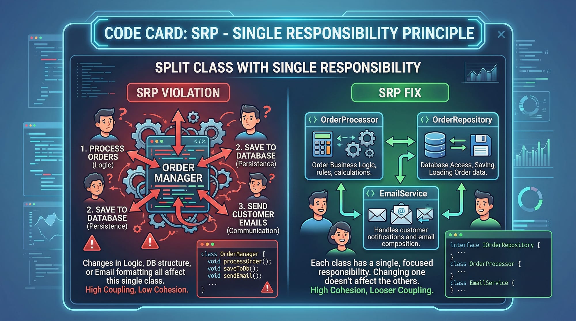 Studentclass handles only student-related logicReceiptPrinterhandles printing- Each class has a single responsibility