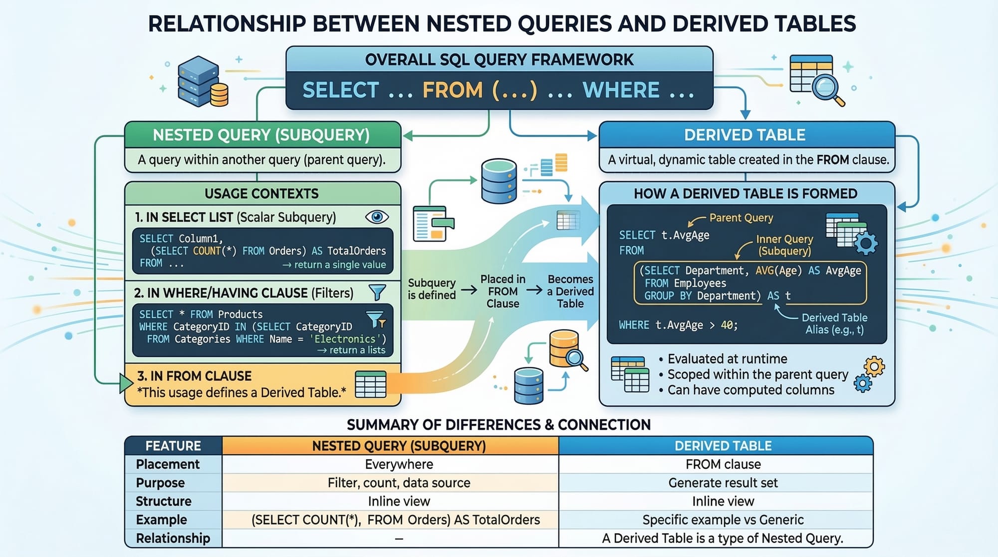 SQL subqueries, also known as nested queries, are queries within queries that allow you to perform complex operations and fetch data based on results from another query. Learning SQL subqueries is essential for Pakistani students aiming to strengthen their database skills and handle real-world data scenarios efficiently. Subqueries empower you to write advanced SQL statements, improve query performance, and solve problems in finance, academics, e-commerce, and more.