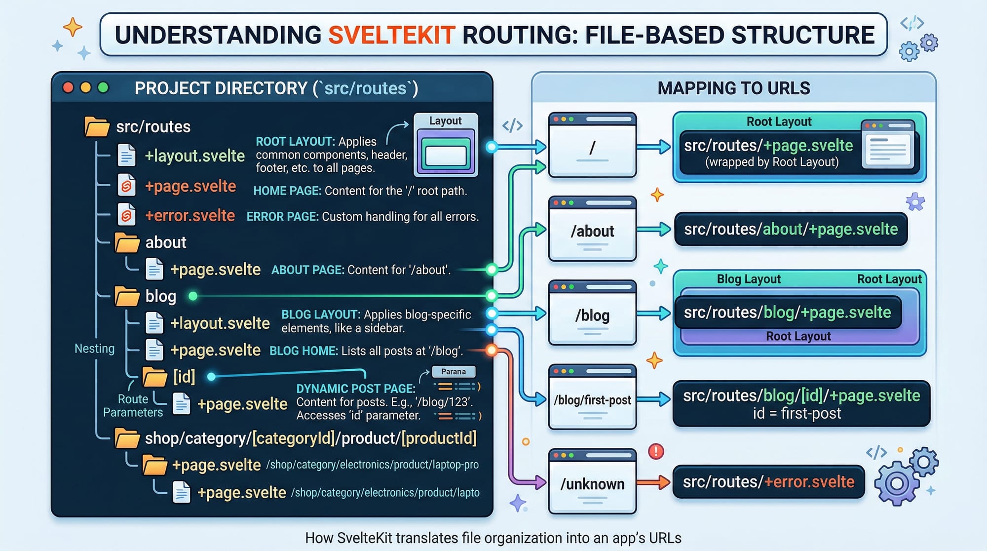 SvelteKit is a framework built on top of Svelte that helps you build full-stack applications with routing, server-side rendering, and APIs.