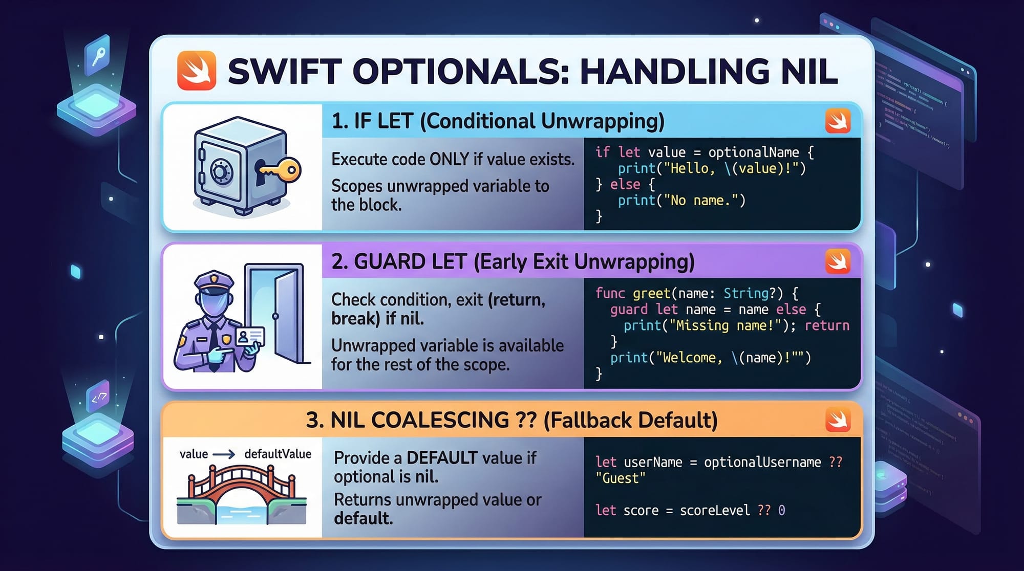 - Avoid common mistakes like force unwrapping