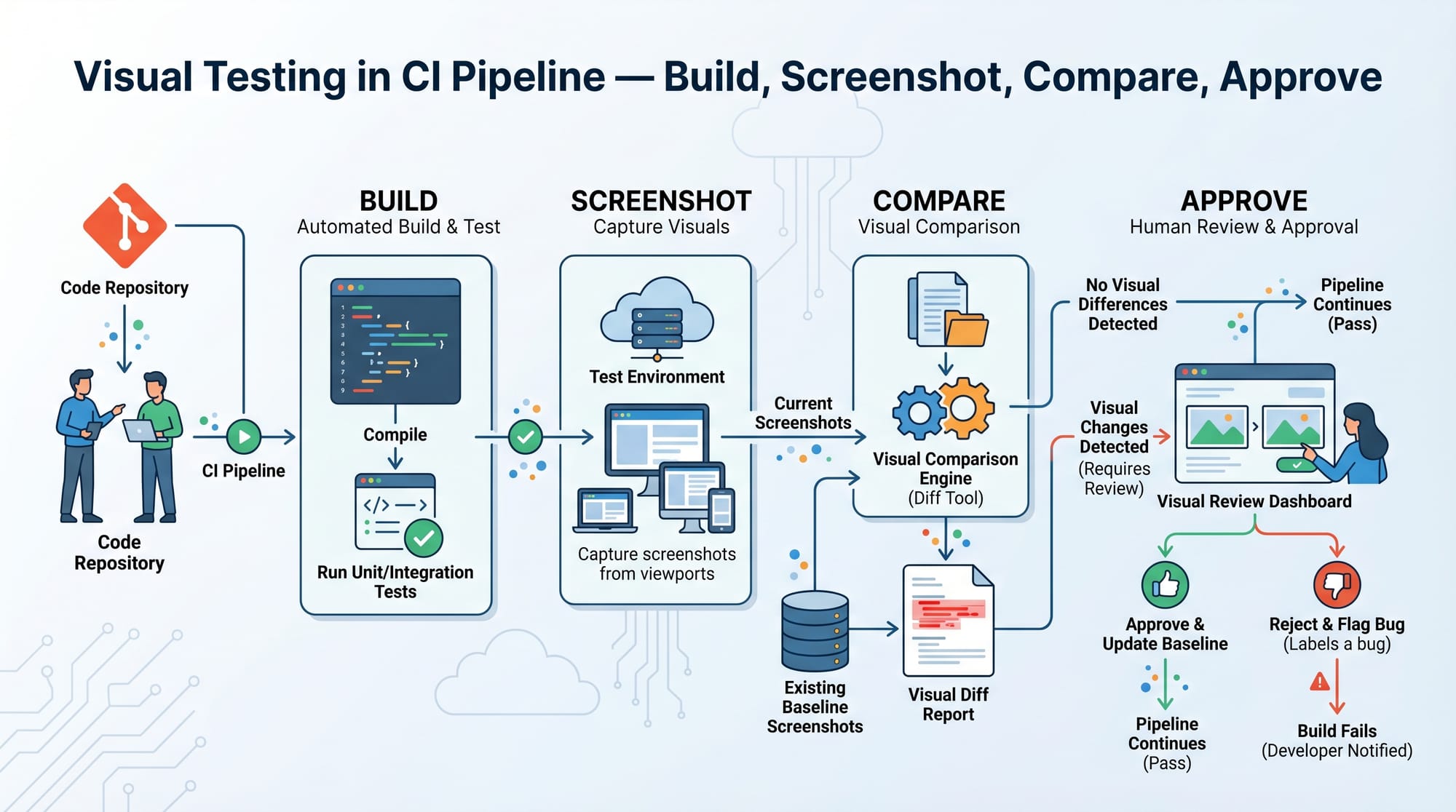 - Visual regression testing ensures UI consistency across code changes