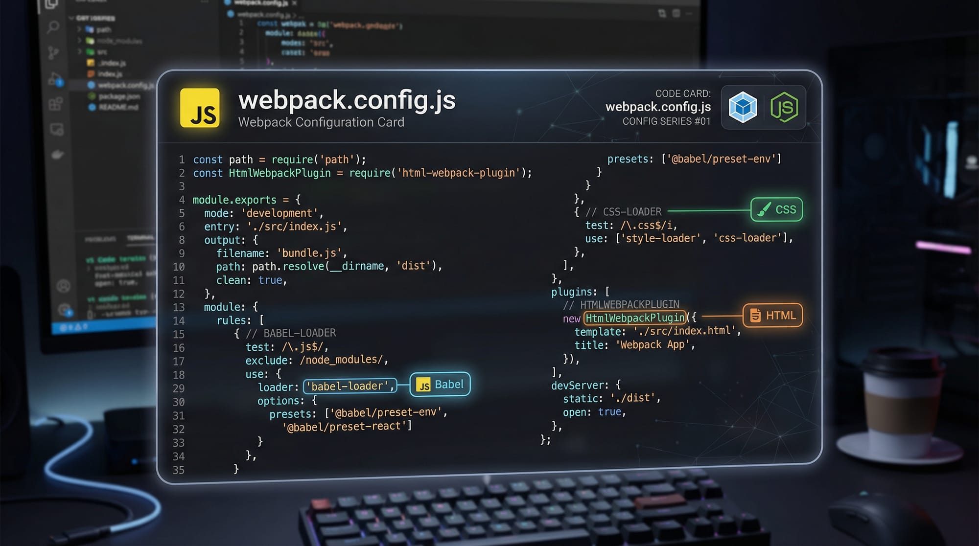 HtmlWebpackPlugin→ Generates an HTML file and injects the bundled JS automatically
